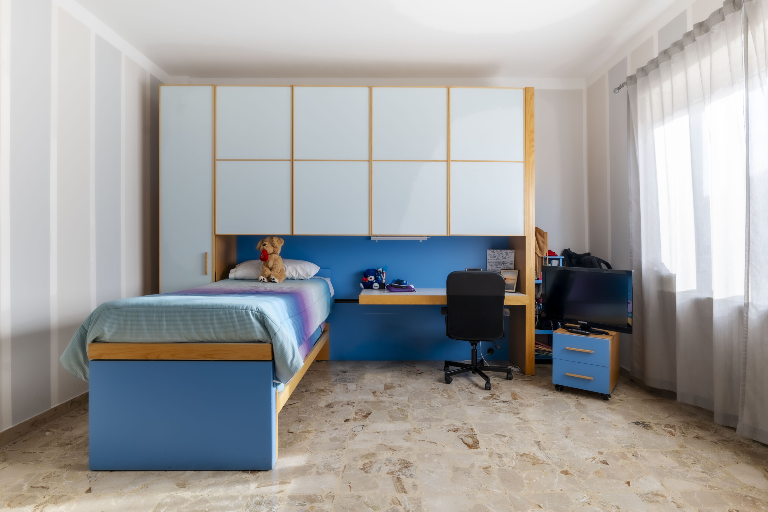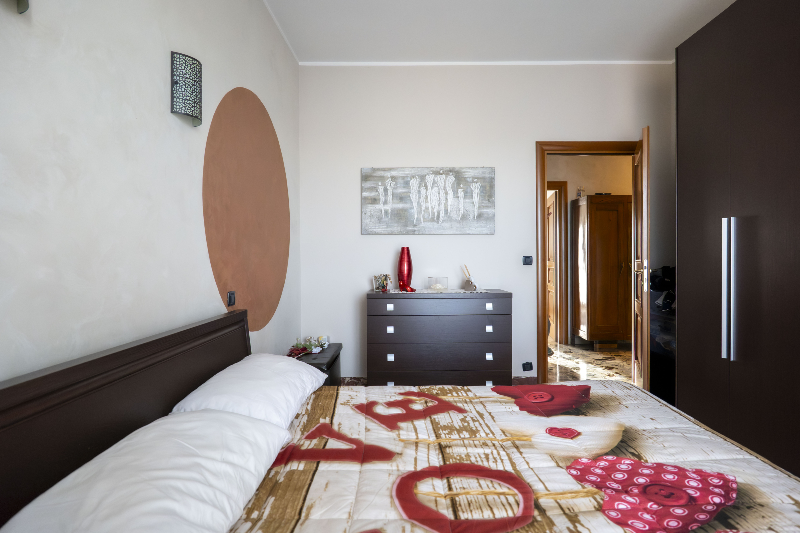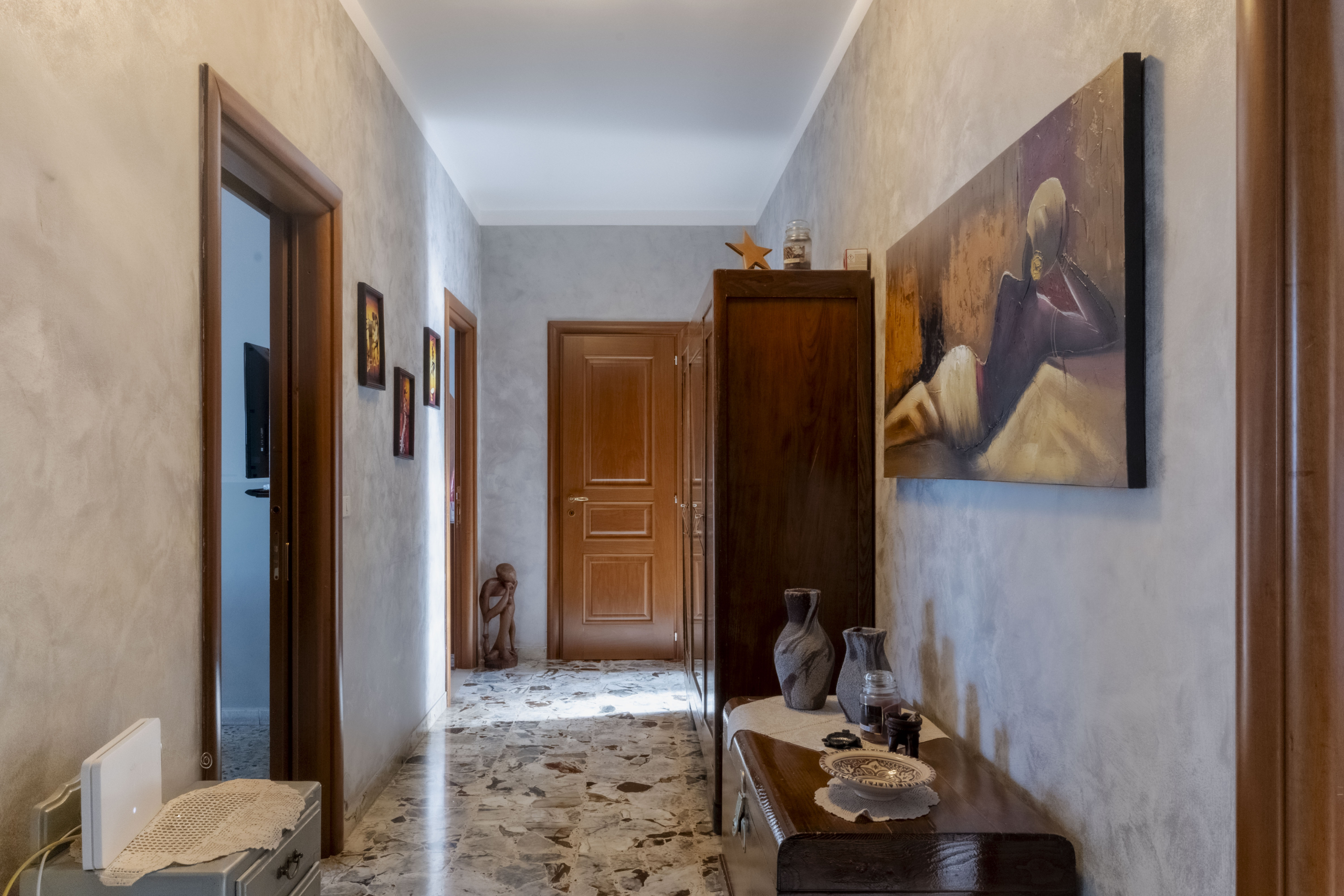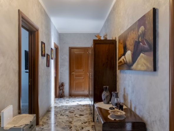 L’appartamento si apre su un ampio ingresso che collega in modo funzionale tutti gli ambienti: