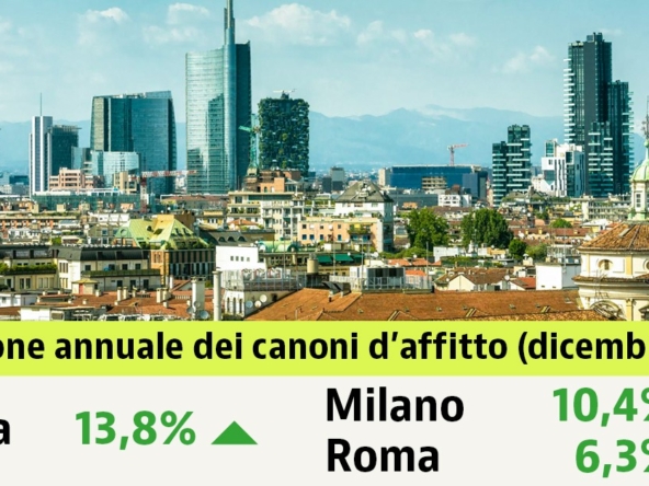 Nei principali mercati della locazione la tendenza rimane prevalentemente rialzista, con la sola eccezione di Milano, in diminuzione a febbraio dell’1,1%, che mantiene comunque il primato degli affitti più elevati d’Italia con una media di 23,3 euro/m2. Dall’altro lato, Roma registra un aumento del 4,4%, Bologna e Genova segnano un incremento del 2,5%, Torino del 2,2%, mentre e Napoli si ferma all’1,8%.